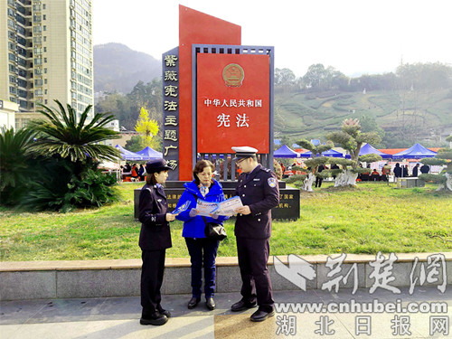 荆楚网(湖北日报网)讯(通讯员 欧阳智慧 董洪瑞)12月2日,湖北省襄阳市保康县2025年“宪法宣传周”启动仪式在紫薇宪法主题广场如期举行。保康县公安局组织法制、刑侦、禁毒、交警、治安等多警种民辅警全力参与,以丰富多元的宣传形式扎实践行“谁执法谁普法”责任,让法治观念扎根群众心底,让法治温度直抵百姓心间。