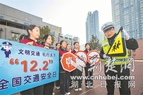 11月28日,市公安局交管支队交警二大队民警走进市诸葛亮中学,宣传交通安全知识。