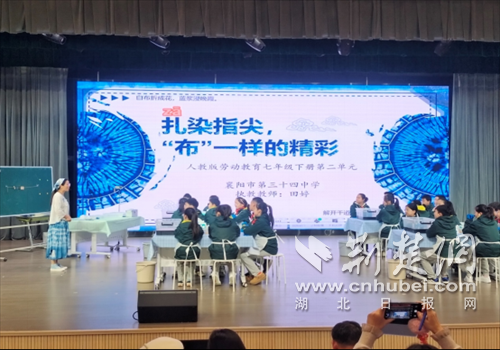 荆楚网(湖北日报网)讯(通讯员 杨玉梅 李小燕)12月11日,在刚刚结束的“湖北省初中劳动好课堂”展评活动中,襄阳市第三十四中学田婷老师执教的《扎染指间,“布”一样的精彩》一课,凭借独具匠心的教学设计、精湛的课堂驾驭能力,从全省众多优秀选手中脱颖而出,以总分第一的优异成绩斩获湖北省一等奖。现场展评活动在武汉长春街第二小学隆重举行,田老师的现场课融合非遗文化与劳动教育,赢得了专家团队的高度赞誉。