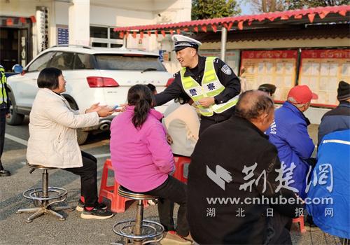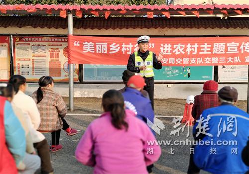 荆楚网(湖北日报网)讯(通讯员 谢明月)12月10日,襄阳交管支队交警三大队组织民辅警深入辖区马营村,开展“美丽乡村行”交通安全宣传活动,贴近群众普及交通安全知识,重点提醒三、四轮车出行安全,赠送安全头盔,将平安守护送到村民身边。