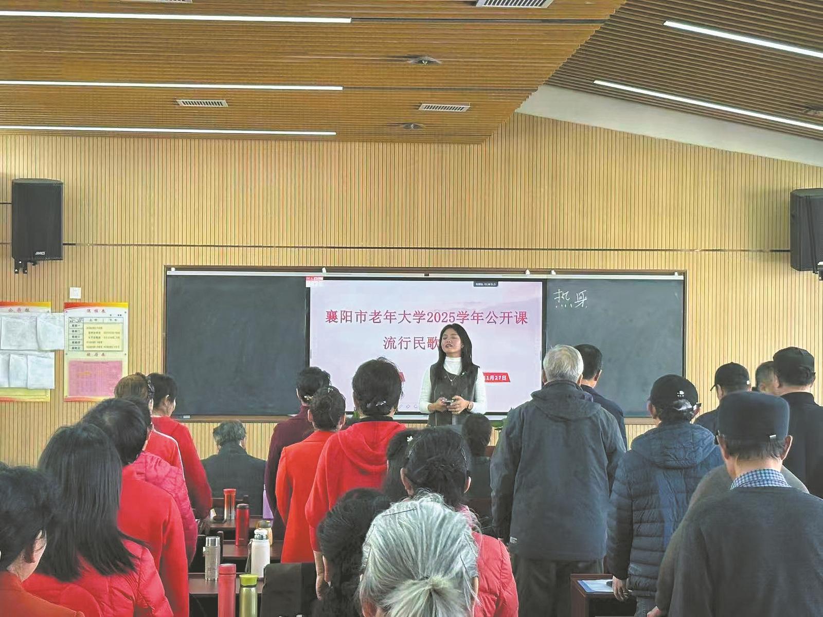 本报讯【全媒体记者朱月皎 通讯员袁怡 黄萌】近日,在襄阳市老年大学音乐系公开课上,教师汪爱明一开口,一段高亢的东北民歌旋律便在教室响起。