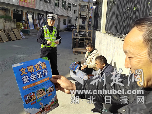 荆楚网(湖北日报网)讯(通讯员 欧阳智慧 方国辉)巡回宣讲进乡村,交通安全入民心。12月17日,湖北省襄阳市保康县公安局交通管理大队“美丽乡村行”交通安全巡回宣讲队深入城关镇三溪沟村,开展交通安全宣传活动。通过“零距离”宣讲,进一步提升广大群众的交通安全意识和自我防护能力,从源头上预防和减少农村地区道路交通事故的发生。