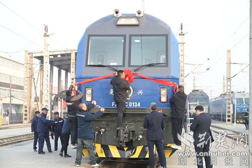 荆楚网(湖北日报网)讯(通讯员 万斌超 董柏麟 张正昆)12月19日,笔者了解到,在中国铁路武汉局集团有限公司襄阳机务段的整备场上,3台披红挂彩的“复兴号”的内燃机车整齐停放在股道上,“蓝色基调,黄色点缀”的外观,在阳光的照射下格外抢眼。“复兴号”内燃机车上线首发仪式的启动,标志着有着56年历史的襄阳机务段正式踏入内燃机车的“复兴时代”,为鄂西北铁路运输通道注入全新动能。