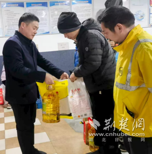 活动最后,调研组为参与座谈的职工代表送上了米、面、油等慰问品,一份份物资承载着工会的关怀与敬意,让新就业形态劳动者在寒冬中感受到了实实在在的温暖。