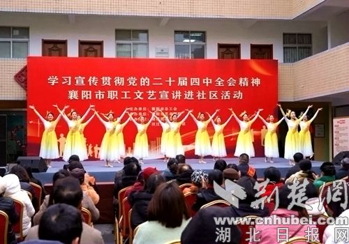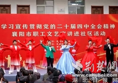 荆楚网(湖北日报网)讯(通讯员 田灵 黄瑜)12月23日下午,襄阳市职工文艺宣讲进社区活动在樊城区汉江街道高庄社区举行。此次活动由襄阳市总工会联合市艺术剧院开展,蓝光创新创业孵化园职工、社区工作者以及外卖员、快递员等新业态劳动者共120余人参与。