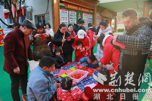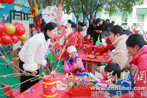 荆楚网(湖北日报网)讯(通讯员吴静峰 朱怡可 胡春卫 )古俗庙会庆新岁,非遗美食两相偎,稚子欢声盈耳畔,古韵轻吟入梦来。12月26日,樊城区第六幼儿园里张灯结彩、喜气洋洋,一场以“龙马精神迎新春,庙趣满园贺新年”为主题的庆元旦迎新春庙会活动热闹启幕。