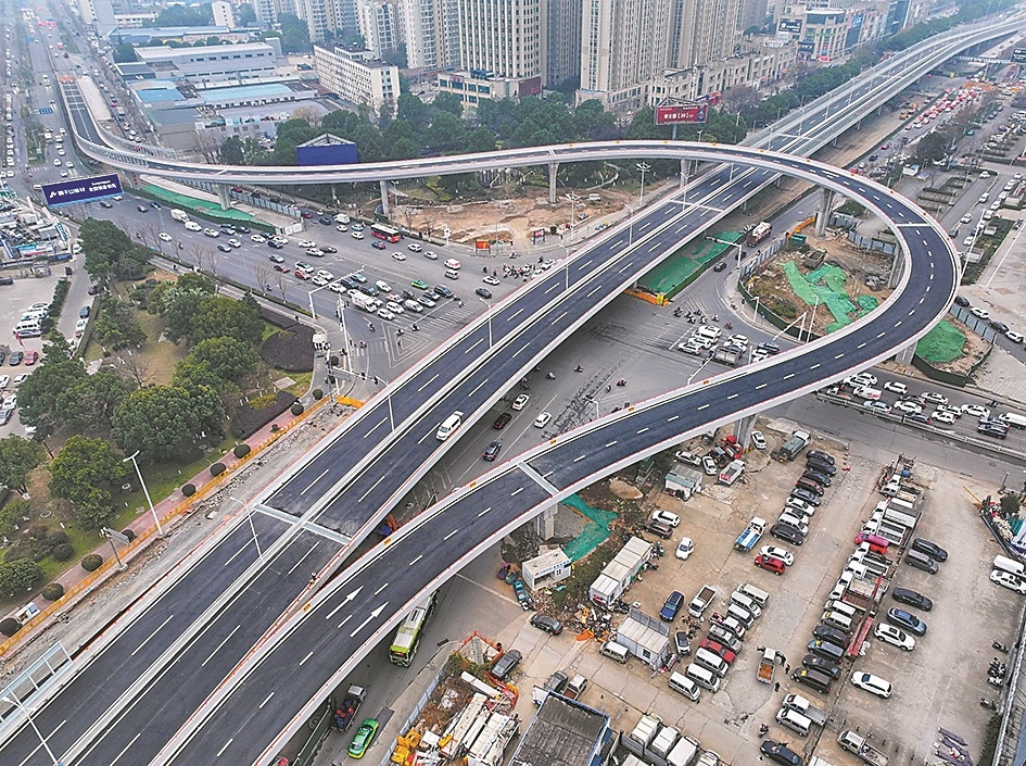 这是12月30日拍摄的邓城大道光彩立交桥,该立交桥12月31日通车,将显著提升区域交通通行效率。