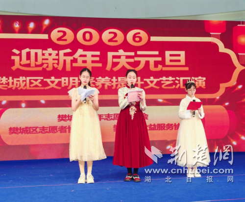 荆楚网(湖北日报网)讯(通讯员 何川、谢清舟、周艺涵)2026年元旦期间,由樊城区文明办指导,区志愿者协会、青年志愿者协会、公益服务协会联合打造的“迎新年庆元旦”文明素养提升文艺汇演在襄阳万达广场温情启幕。这场集艺术性与教育性于一体的文化盛宴,以多元节目为载体,将文明理念融入艺术表达,用真挚情感传递新风正气,为樊城群众送上了满含暖意的元旦祝福,更勾勒出文明城市建设的鲜活画卷。
