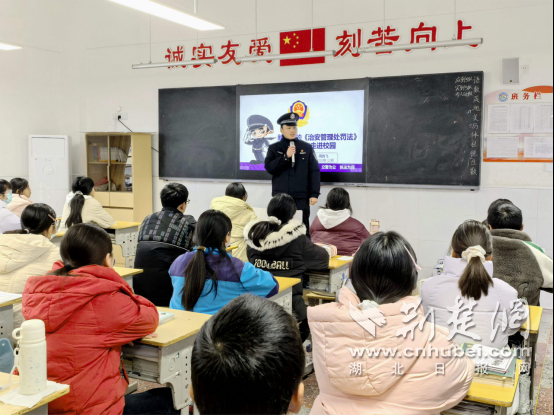 荆楚网(湖北日报网)讯(通讯员 欧阳智慧 陈哲宇)1月5日,湖北省襄阳市保康县公安局马桥派出所民警走进马桥镇中心学校,为全校师生送上一堂干货满满、生动易懂的法治安全宣讲课。此次宣讲紧扣新修订《治安管理处罚法》实施节点,聚焦校园欺凌、动物伤人、冬季防火防诈等与师生生活息息相关的主题,用典型案例释法说理,引导师生提升法律素养和安全防范能力。