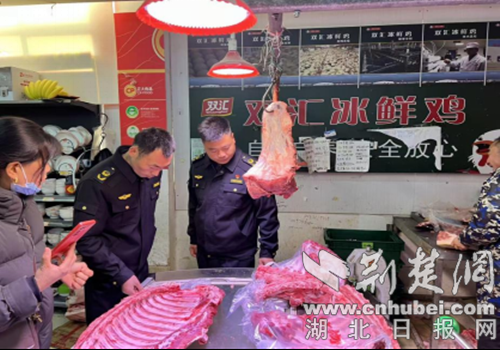 荆楚网(湖北日报网)讯(通讯员 杨唐杰 吴桐)民以食为天,食以安为先。为切实保障辖区猪肉消费安全,筑牢食品安全防线,1月6日,从老河口市市场监管局获悉,该局以“守底线、查隐患、保安全”为核心目标,聚焦猪肉采购、储存、销售等关键环节,在辖区内开展猪肉市场专项整治行动,全力守护群众“舌尖上的安全”。