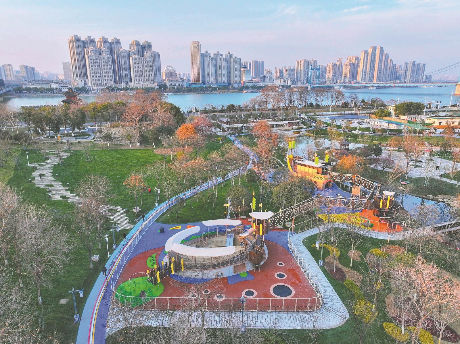 该公园通过对原有绿地进行改造提升,在紧邻襄阳古城的老城区打造出一个集游览观光、亲子娱乐、休闲运动于一体的复合型休闲文旅空间。