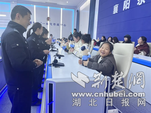 为向广大警属展示公安民辅警的艰苦奋斗与辛勤付出,分局广泛邀请民辅警家属、朋友走进警营、共话警事。一踏入“情指行”一体化作战中心,巨大的电子屏便吸引了孩子们的目光,上面跳动着实时监控画面,城市的每一个角落仿佛都被“尽收眼底”。“这就是我们的‘智慧大脑’,任何突发情况都能第一时间在这里汇总!”民警指着屏幕,用生动的比喻揭开了110指挥系统的神秘面纱。随后,一场趣味十足的PPT讲解更是让孩子们听得入了迷:从110的由来到110受理范围以及如何正确拨打110,一个个动画演示配上民警的“提问互动”,让原本严肃的知识变得鲜活起来。“报警时要说清什么呀?”“地点!还有发生了什么事!”孩子们高高举起小手,争先恐后地抢答,清脆的声音里满是认真,民辅警为孩子们发放警察节小熊奖品。最让人兴奋的环节,孩子们还过了把“调度瘾”。民警特意调出学校门口监控画面,随着指令发出,屏幕里校园门卫室保安通过一键报警系统,立刻回应“收到”,这样的实时互动让孩子们惊呼连连:“太厉害了!孩子们纷纷表示,这次参观学到了很多实用的安全知识,也更理解了110情指行中心和公安民辅警的工作。