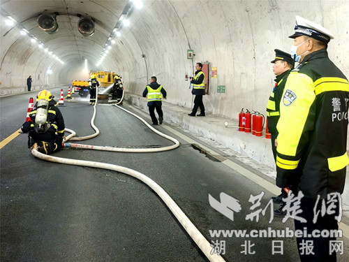 荆楚网(湖北日报网)讯(通讯员 欧阳智慧 方国辉)1月13日,湖北省襄阳市保康县公安局交通管理大队联合路政、消防救援、医疗救护、巡检办、施救及高速公路运营管理等“一路多方”单位,在G59呼北高速保康段成功举行隧道火灾事故跨部门应急救援实战演练,旨在全面提升辖区高速公路隧道突发事件协同处置效能。