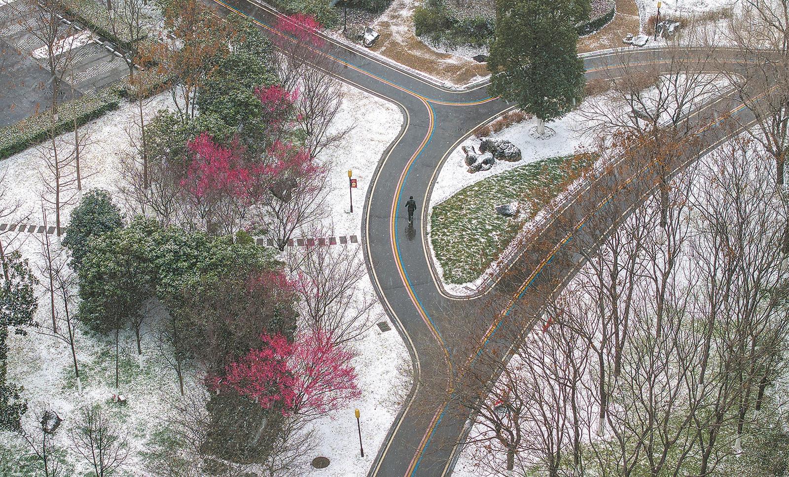 1月19日,市民在雪天出行。自1月18日晚开始,我市迎来今冬以来最强低温雨雪冰冻天气。(相关报道见2版)