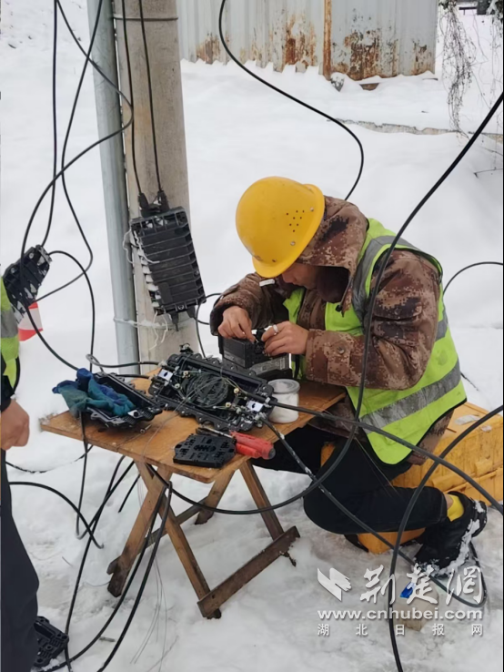 谷城城关镇光缆中断,维护人员冒雪抢修光缆。通讯员供图