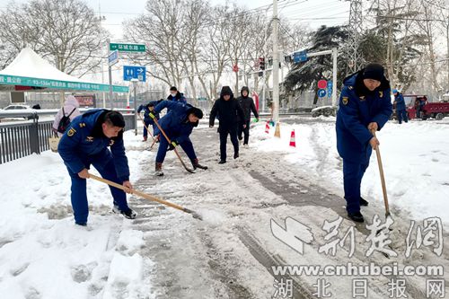 为确保道路畅通及群众出行安全,襄阳市消防救援局迅速启动应急预案,组织消防救援人员手持铁锹、雪铲、扫帚等工具前往全市多个主次干道、桥梁涵洞、公交站点及社区周边等重点区域,全力清除路面冰雪。