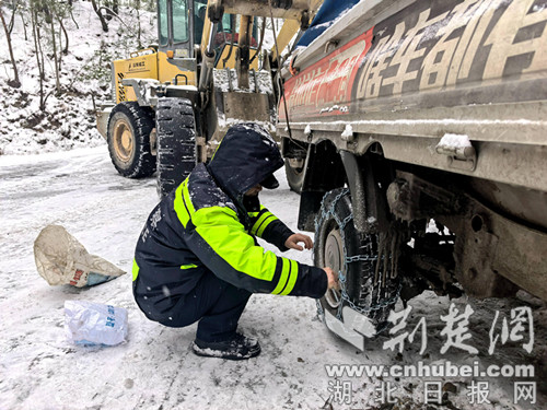 荆楚网(湖北日报网)讯(通讯员 欧阳智慧 丁炎)1月19日至21日凌晨,湖北省襄阳市保康县歇马镇遭遇持续强降雪天气,辖区道路积雪结冰导致交通安全风险陡增。21日上午10时许,一辆货车在S307沮源村路段因路面湿滑失控陷入边沟,保康县公安局歇马派出所民警接警后迅速驰援,联合专业救援力量与热心群众协同作战,成功助被陷车辆脱困。