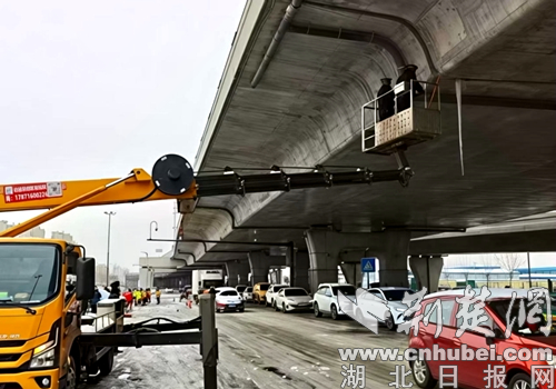 荆楚网(湖北日报网)讯(通讯员 唐飞月)1月20日,襄阳高新区遭遇强降雪后,富康大道高架沿线因融雪结冰形成多处悬挂冰柱,最长达近半米,质地坚硬且位置险要,对过往车辆和行人构成严重安全隐患。