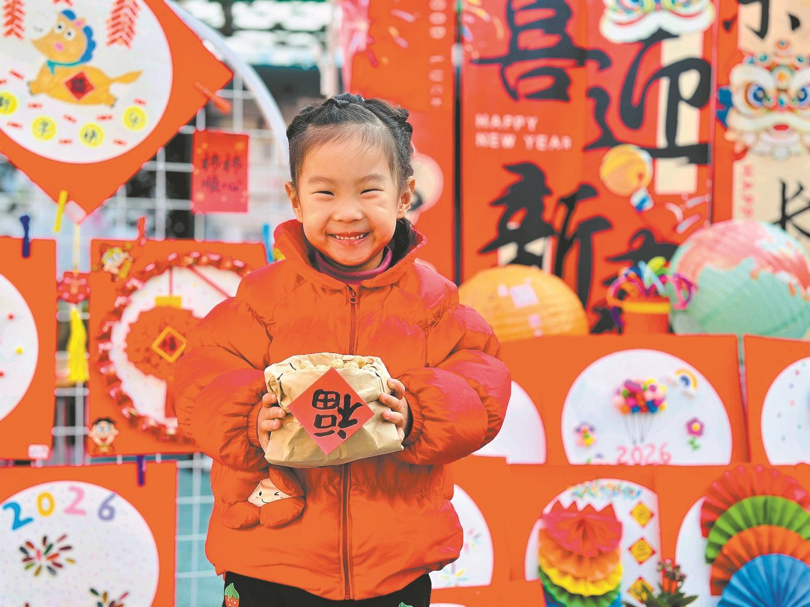 近日,樊城区区直机关幼儿园新年艺术展拉开帷幕。活动现场,孩子们手持亲手拓印的福字,搭配各式各样的创意年货道具,在展区前有序拍照打卡。他们以充满童趣的方式传递新年祝福,既展现了幼儿园丰富多彩的迎新活动,也为即将到来的新春增添了喜庆氛围。