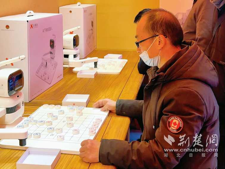 现场,机器人舞团的动感表演引来阵阵喝彩,AI棋艺区上演着紧张的人机对弈,AI拍照机和巧克力打印机前也排起了体验长队;在文创市集,灯笼点缀的通道两侧,陈列着以南漳文化为灵感的各类文创产品,本地特产香菇、葛粉、蜂蜜等也集中亮相。