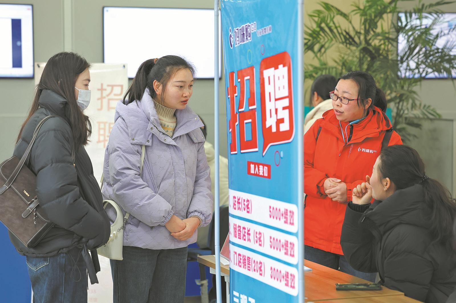 1月23日,求职者在襄城区“春风行动”专场招聘会现场咨询岗位信息。临近春节,为助力广大求职者实现“家门口”就业,襄城区公共就业和人才服务局在一楼大厅举办“春风行动”专场招聘会。