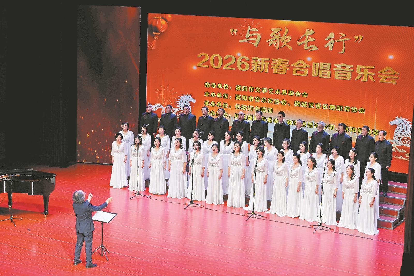 1月25日,“与歌长行”2026新春合唱音乐会在襄阳剧院举行,襄阳长歌行合唱团用优美的歌声迎接新春。