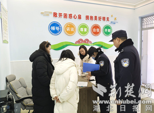 民警在检查心理咨询室运行情况。通讯员 供图