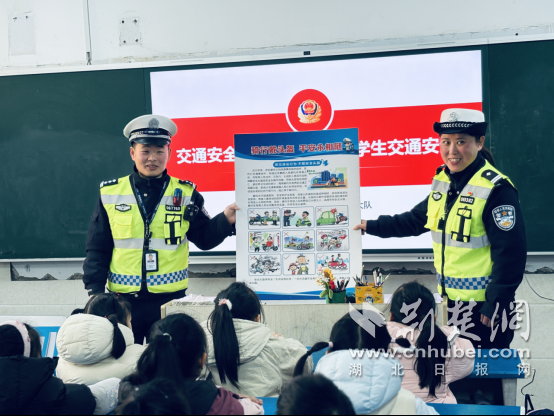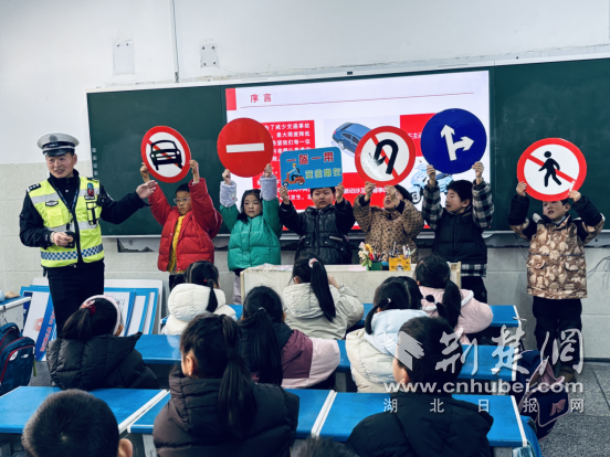 荆楚网(湖北日报网)讯(通讯员 张然然)1月23日,寒假临近之际,襄阳交警二大队民警走进市人民路小学,以主题班会形式,为同学们送上一堂干货十足、趣味盎然的寒假安全“第一课”,切实筑牢学生假期出行安全防线。