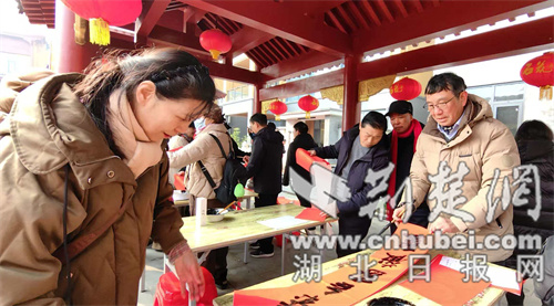 荆楚网(湖北日报网)讯(通讯员 黄妮娜 李志萍)1月25日,襄阳市樊城区汉江北路社区与汉江老年大学以“迎新春·享健康”为主题,开展迎新春写春联、送福字等惠民活动,用翰墨传情增添浓浓年味,为现场居民送上新春的真挚祝福。