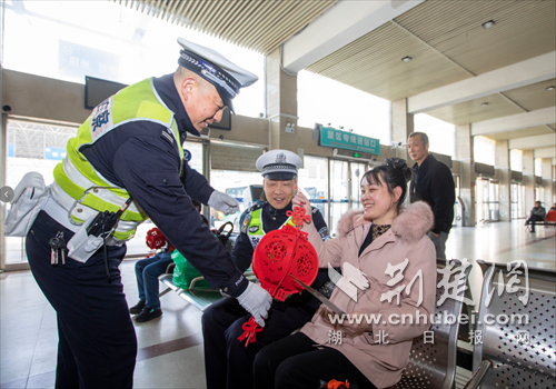 荆楚网(湖北日报网)讯(通讯员 梁政 张然然)2月2日,2026年春运拉开大幕,襄阳长途客运站内归心似箭、人流如织。襄阳市公安局交管支队交警二大队围绕“安全护航·温暖归家”主题,在站内开展了一场别开生面的交通安全宣传活动,以轻松互动传递安全理念,守护旅客平安返乡路。
