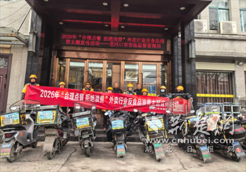 荆楚网(湖北日报网)讯(通讯员 余飞 龙启耀)新年伊始,节约不减。为使“光盘行动”真正融入日常生活、将反食品浪费落到实处,1月28日,湖北老河口市市场监管局组织辖区外卖平台及外卖骑手共同启动“合理点餐、拒绝浪费”宣传活动,以通俗易懂、切实可行的方式传播节约粮食的理念。