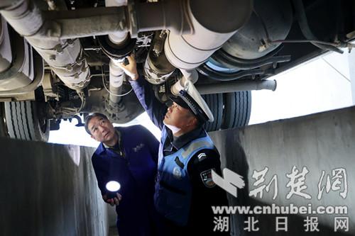 交警在进行春运各项安全检查。通讯员 供图