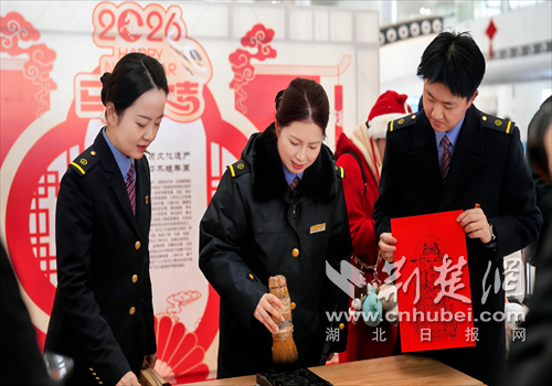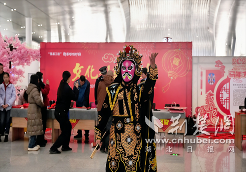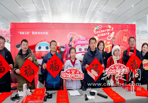 荆楚网(湖北日报网)讯(通讯员 袁广益、焦杨)2026年2月2日上午,武铁襄阳东站候车大厅内已涌动着春运特有的温情与活力。襄阳市文联联合武铁襄阳车站共同打造的“文化列车千里行·送万福进万家”主题活动正式拉开帷幕,三大站点同步开展书法送福、非遗展演等系列文化惠民活动,为踏上归途的旅客送上充满年味的文化盛宴。