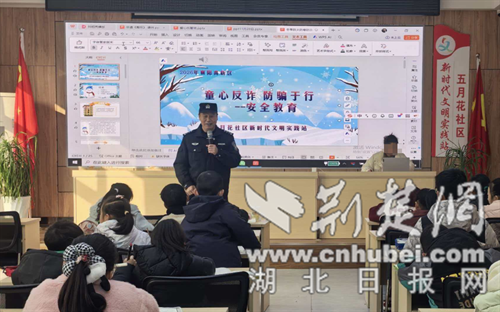 荆楚网(湖北日报网)讯(通讯员 朱晨晖)2月4日上午,襄阳市富康路派出所借助五月花社区寒假社区托管班平台,面向辖区儿童及居民开展“童心反诈、防骗于行”暨“防火、防寒、防冻、防一氧化碳中毒”主题安全宣传讲座,将安全防护知识送到群众身边,为未成年人寒假安全保驾护航。