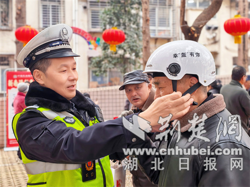 荆楚网(湖北日报网)讯(通讯员 张然然)为筑牢春运道路交通安全防线,让居民平安祥和欢度马年新春,2月4日,襄阳市公安局交管支队交警二大队联合朝虹社区,开展“新春送福传暖意 安全同行护平安”交通安全宣传进社区活动。