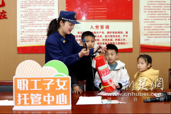 荆楚网(湖北日报网)讯(通讯员 张纪文 刘旭)“油锅起火能用水灭吗?”“我知道!不能,要盖锅盖!”2月6日,湖北省襄阳市保康县消防救援大队走进光千社区寒假爱心托管班,一场以“安全过寒假·开心迎新年”为主题的消防培训活动在此举行。40名留守儿童、双职工及新就业群体子女,在11名大学生志愿者的陪伴下,不仅收获了一份特别的“寒假安全礼包”,更被授予了“小小消防监督员”的新身份。