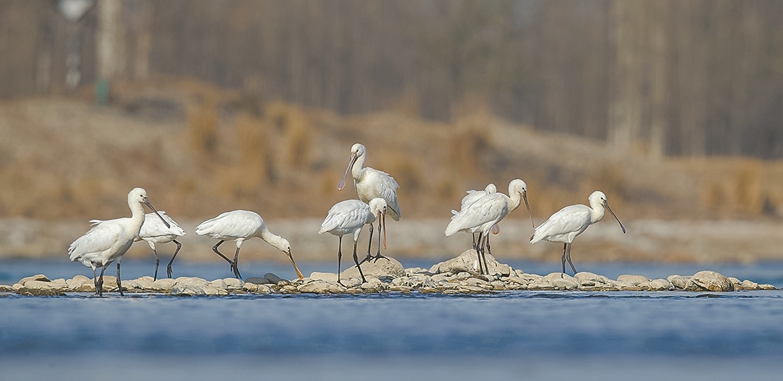 成群的白琵鹭(国家二级保护动物)在汉江老河口段栖息觅食。 通讯员 王军 摄