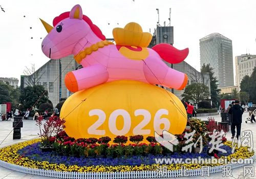 据襄阳市住房和城市更新局人民公园介绍,2026年春节布展重点结合马年生肖元素,采用充气艺术、创意装置与传统花卉相结合的方式,设置了多处互动打卡点。公园广场区中心设置了一组充气骏马造型,该装置身披锦绣,供游客合影留念。园区棕榈林区域设置了一处名为“拍马屁”的创意打卡装置,通过轻拍互动形式实现“沾沾福气”的主题,将传统民俗与现代互动结合。园区地标建筑得天楼上安装了一尊“财神君”像,供游客祈福合影。公园北门入口设置了马年主题立牌,以骏马奔腾剪影融合春节元素为设计。
