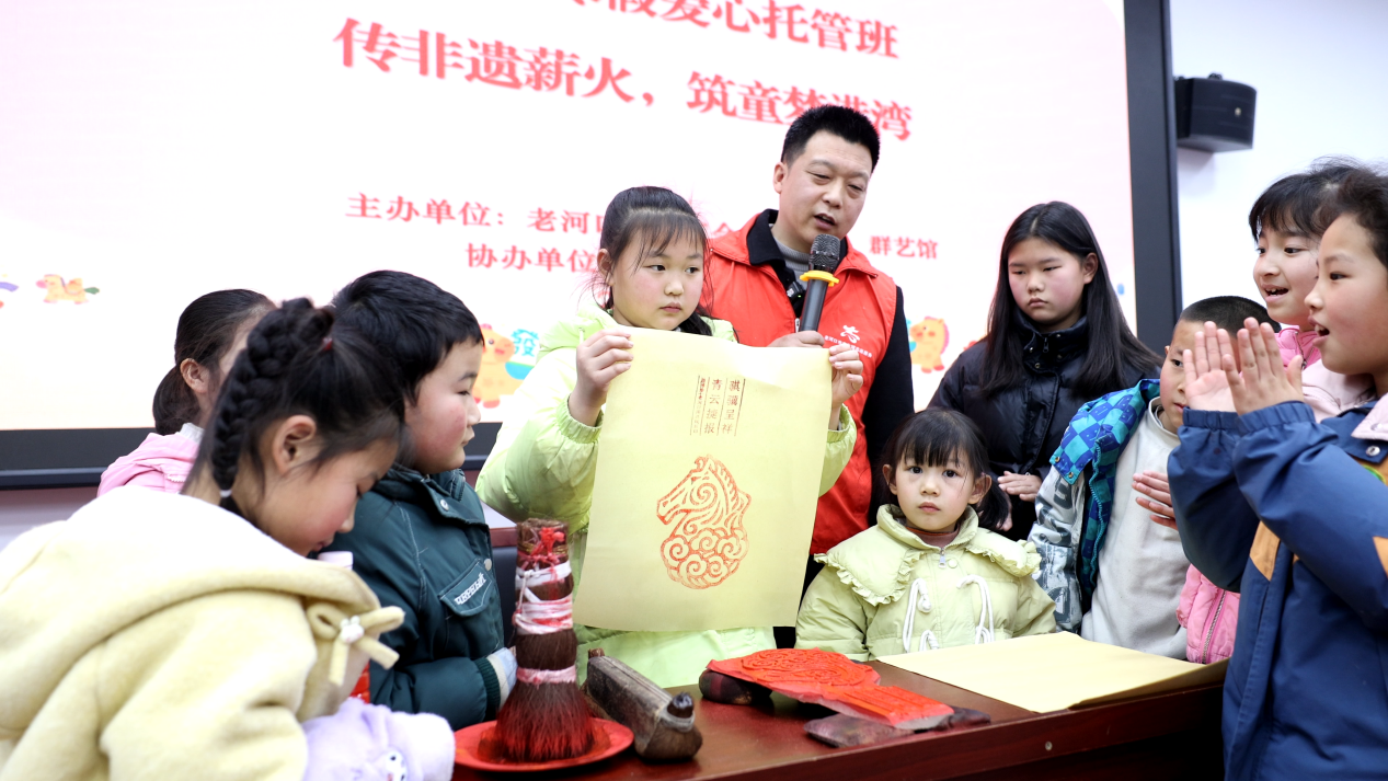 孩子们体验国家级非物质文化遗产——老河口木版年画