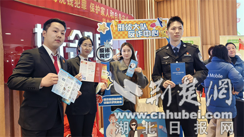 荆楚网(湖北日报网)讯(通讯员 李秋晨 朱晨辉)2月11日下午,小年刚过、年味渐浓,襄阳高新区商圈人流如织、年货热销。为守护市民“钱袋子”与平安过节,襄阳市公安局侦查中心、高新区公安分局、区检察院、区法院联合移动运营商、紫贞街道社区解读康复工作站及兴业银行、华夏银行、邮储银行等单位,走进辖区金店、商超等人流密集场所,开展“反诈禁毒宣传年货会”,把安全知识送到群众身边。