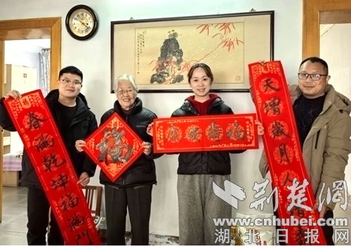 慰问中盟员万开平现场赠送亲手书写的春联。春联内容融合民盟元素与马年寓意,将传统文化与盟务特色结合。老同志收到春联后表示,礼物既有年味又有“盟味”。