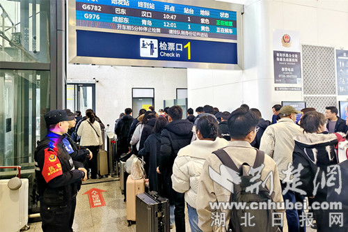 高铁枢纽派出所民警在检票口执勤。通讯员 供图
