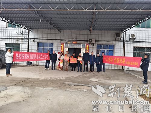 荆楚网(湖北日报网)讯(通讯员 胡越锋)2月26日上午,刘集街道办事处社会事务办退役军人服务站联合武装部前往刘集社区,为荣立三等功的现役军人朱道鹏的家庭送上立功喜报。