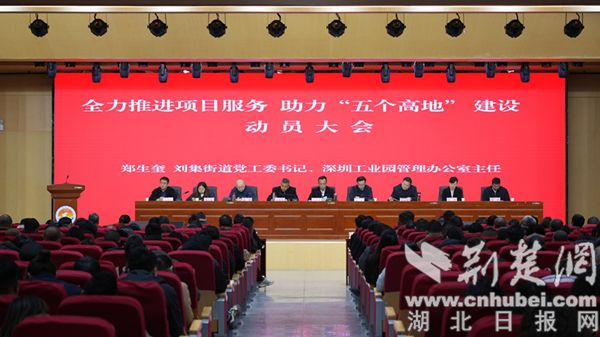 荆楚网(湖北日报网)讯(记者王懿 通讯员刘刚)2月27日,襄阳高新刘集街道(深圳工业园管理办公室)召开全力推进项目服务助力“五个高地”建设动员大会,街道班子成员,驻街道单位负责人,各中心、街道机关全体工作人员,村(社区)全体工作人员,园区企业代表参加会议。