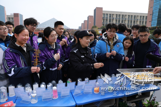 禁毒科普展区亮点纷呈,全面升级宣教体验。现场摆放AI智能语音禁毒展板,支持智能互动问答,实时讲解毒品知识;集中展示传统毒品、合成毒品、新精神活性物质仿真模型,以及缉毒办案收缴的吸毒工具,民警现场以案释法,直观揭露新型毒品的伪装性、迷惑性。互动游戏区设置禁毒知识大转盘、禁毒飞行棋、毒品拼图、知识竞赛、投球识毒、毒驾体验等趣味项目,学生们在玩乐中学习识毒、防毒、拒毒技能,将“珍爱生命、远离毒品”的理念内化于心、外化于行。