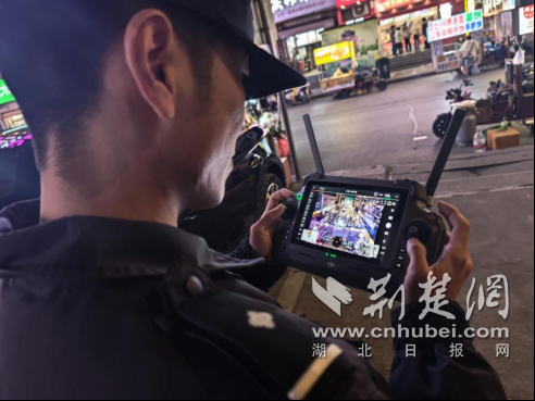 空地一体,科技赋能织密巡防网络。针对节日期间景区客流饱和、夜市商圈“人从众”的特点,支队动态调整勤务部署,在原有的快反巡控基础上,于唐城、华侨城、北街、华丰路增设4个巡组,将警力最大限度囤向街面,确保人民群众安心过节。其中,华丰路巡组依靠无人机“鹰眼”实现一分钟巡遍整条街面,实时监测人流密度与安全态势;北街巡组除高空巡查外,针对景区“黑飞”隐患,使用反制设备精准、依法处置黑飞无人机。这种立体化巡防模式,不仅为快速响应提供了精准的“上帝视角”,更有效提升了见警率、管事率和震慑力,让群众真切感受到“警察就在身边,平安就在眼前”。