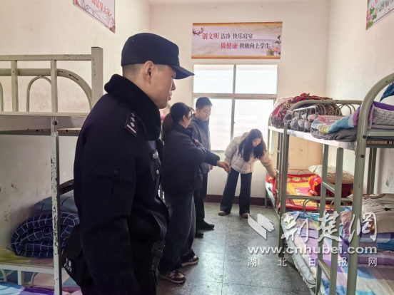 荆楚网(湖北日报网)讯(通讯员 何佳敏)为切实筑牢校园安全防线,保障春季开学平稳有序,守护广大师生生命财产安全,3月4日,长坪派出所联合政府工作专班,深入辖区中小学、幼儿园开展开学季校园安全专项检查,以“严排查、除隐患、保安全”的实际行动,为新学期校园安全保驾护航。