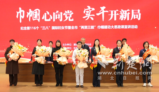 荆楚网(湖北日报网)讯(通讯员 向芙宣)芳菲三月绽芳华,巾帼建功启新程。3月6日,襄阳市以“巾帼心向党 实干开新局”为主题,举办纪念第116个“三八”国际妇女节暨全市“两资三能”巾帼建功大思政课宣讲活动。市委常委、统战部部长伍义兵;东风汽车股份有限公司副总经理黄臻;市妇联班子成员、县级干部出席活动。