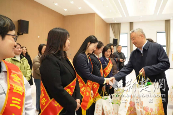 为表彰先进、树立榜样,现场为获得全国、全省表彰的优秀妇女典型和先进集体代表赠送学习书籍。全国三八红旗手杨超华,湖北省三八红旗手李伟、袁净、陈丽婷等优秀个人代表,全国巾帼文明岗国家税务总局襄阳鱼梁洲经济开发区税务局,湖北省三八红旗集体襄城区人民检察院未成年人检察“襄水苔花”工作室等先进集体代表依次上台受赠。