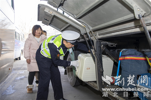“请大家有序排队,上车系好安全带。”2月2日春运首日清晨,鄂西北最大的公路客运枢纽站襄阳汽车客运中心站客流熙熙攘攘,拖行李箱旅客在站前广场排成长队。交警二大队民警穿梭其间,帮助旅客提拎行李,提醒安全出行。在东津收费站入口,高警二大队民警逐辆车叮嘱驾乘人员系好安全带。预防式的宣传让旅客们感到阵阵舒心和暖意。